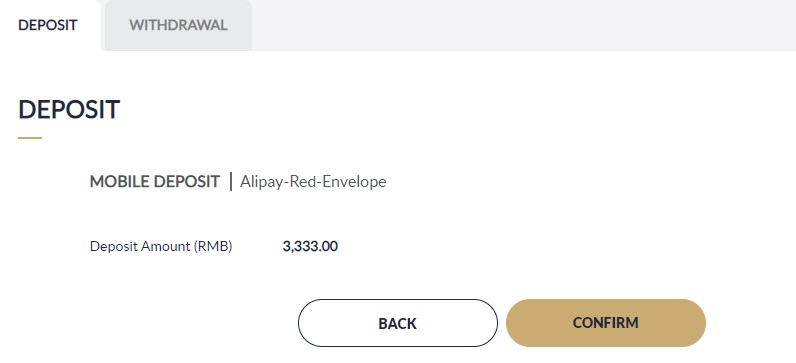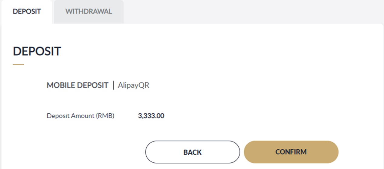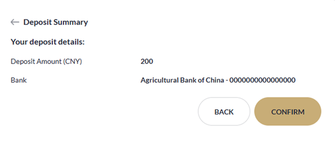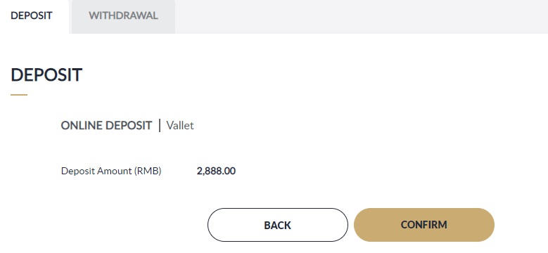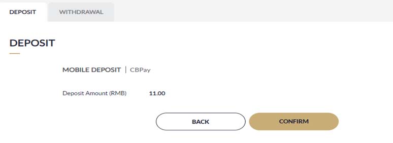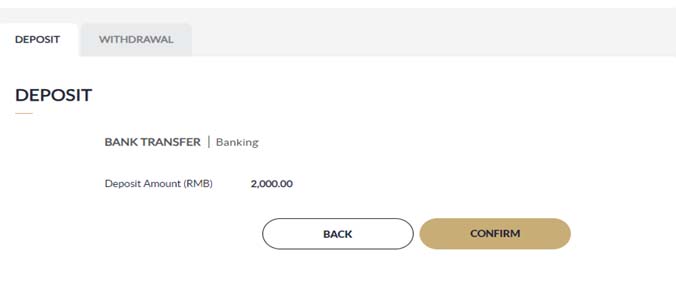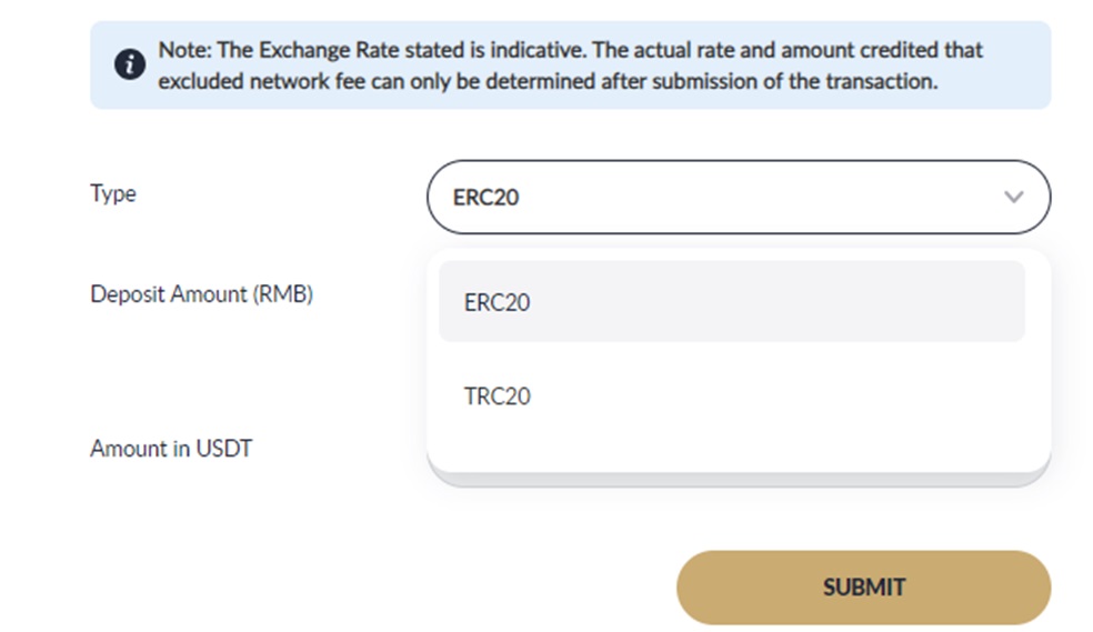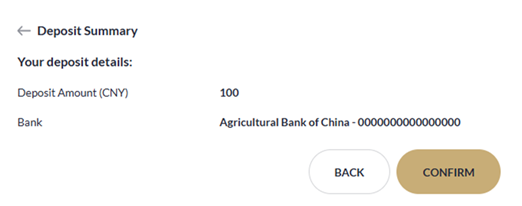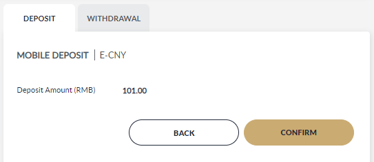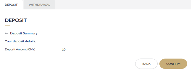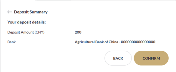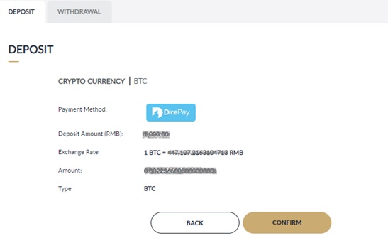 - Click Confirm to be redirected to crypto transaction page or click Back to change your deposit amount (Make sure to enable pop – up window) Note: The exchange rate stated is indicative. The actual rate and amount credited can only be determined after submission of the transaction.