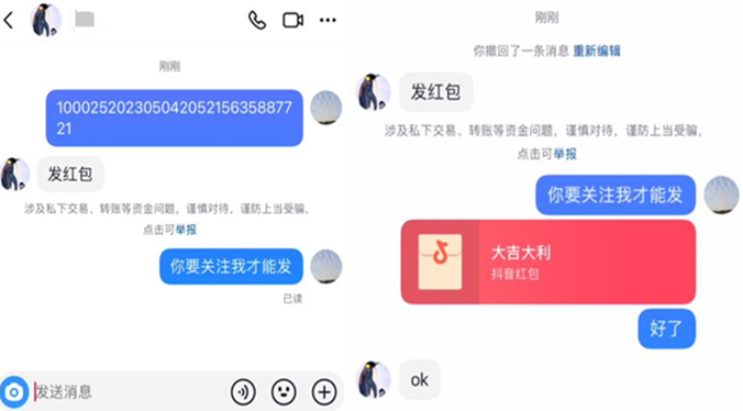 - After sending a red packet, once card dealer received, the fund will be auto credit to user account, after that need to unfollow the card merchant. The