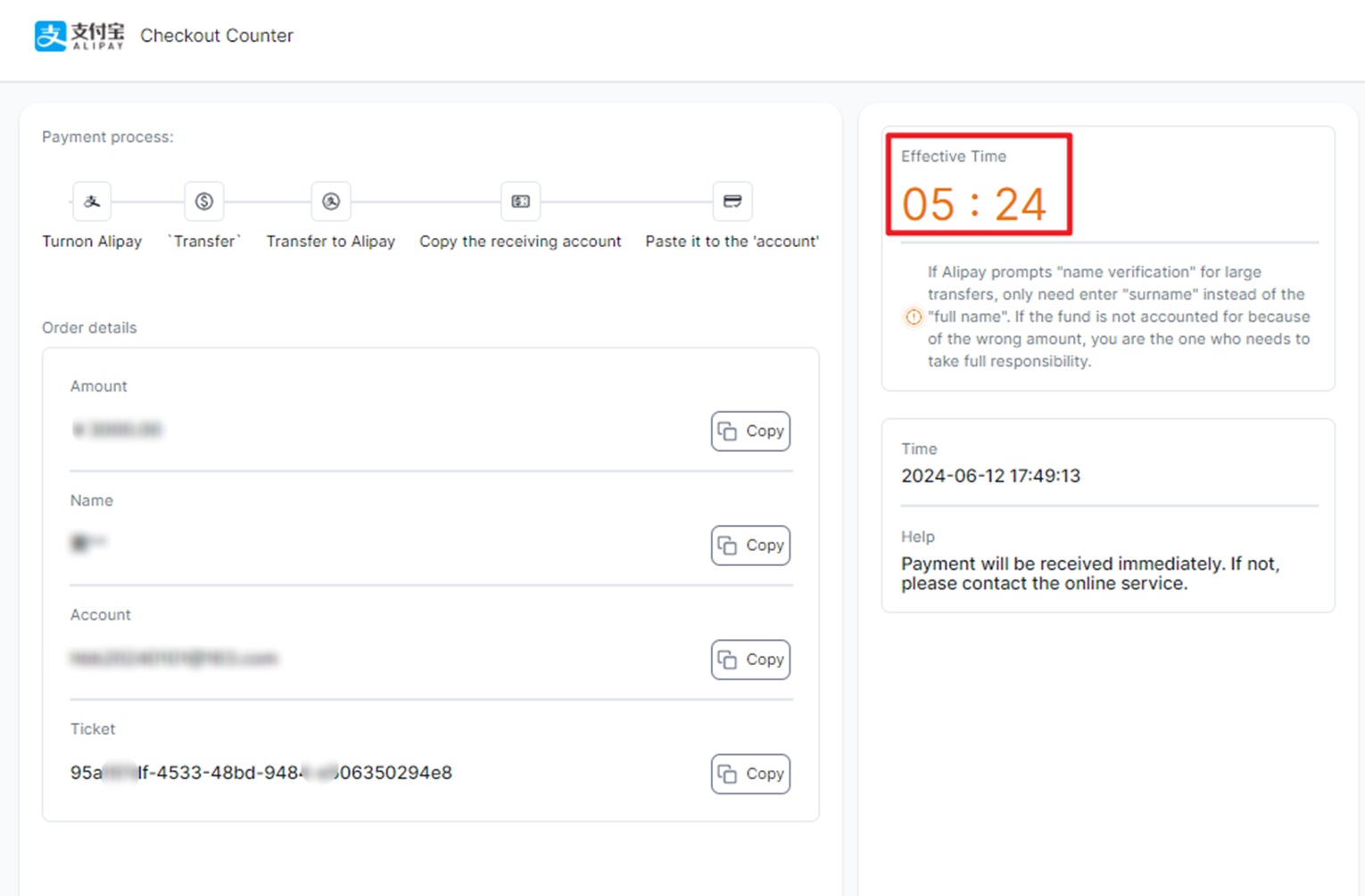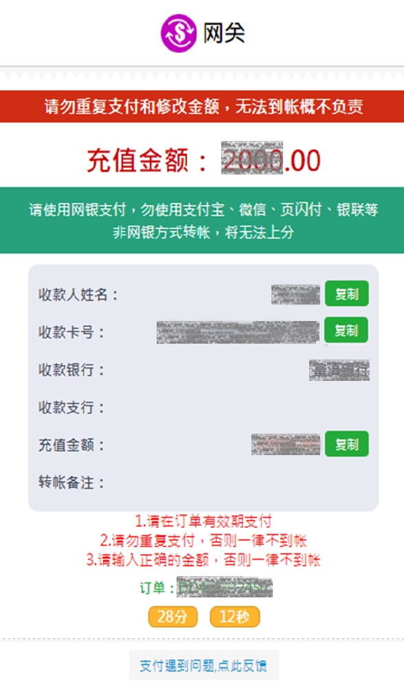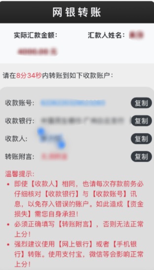 - Follow on-screen instructions, complete within time limit, click【我已转账】