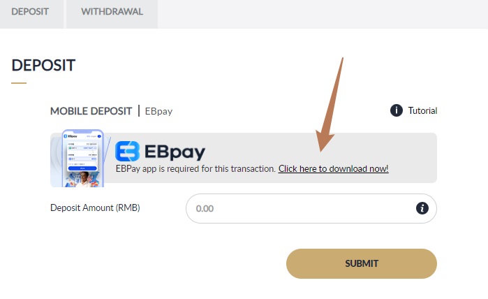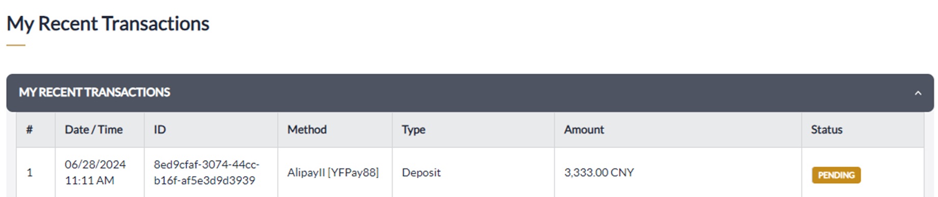 - Select deposit method "Mobile Deposit" and choose "YFPay88"