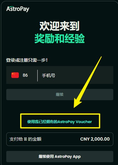 - Please click【使用我已经拥有的AstroPay Voucher】