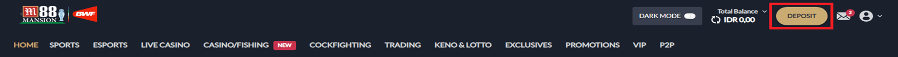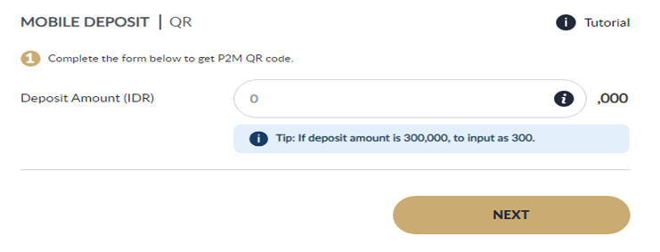 - Click "DEPOSIT" tab → Click "MOBILE DEPOSIT" → Click "QRIS P2M".