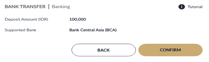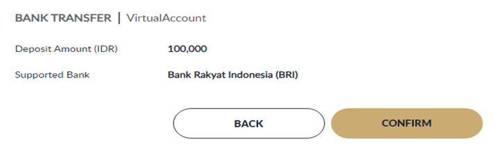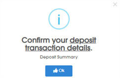 - Click CONFIRM to be re-directed to a new page or click BACK to modify your deposit amount.