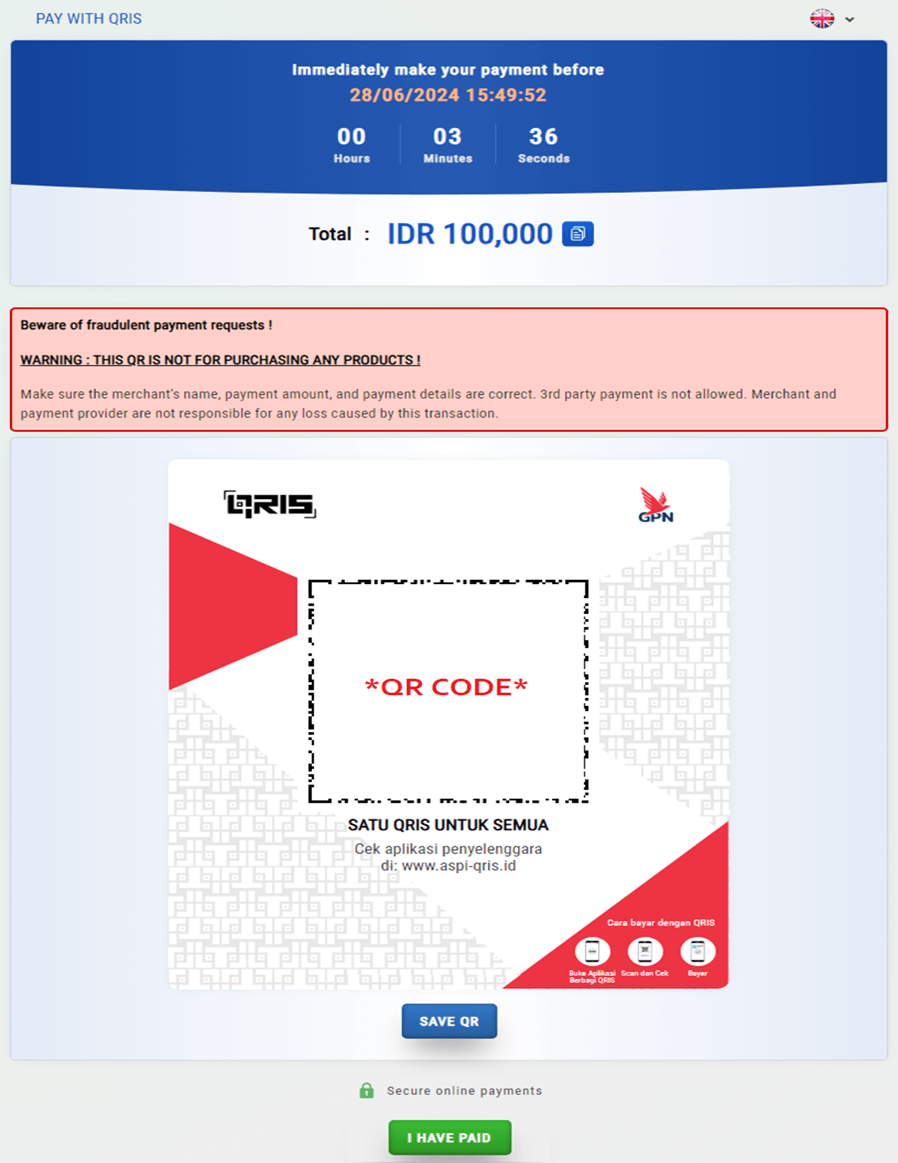- Scan the QR code to transfer immediately. After that, click "I HAVE PAID".