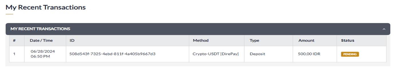 - Find your latest deposit record in "MY RECENT TRANSACTIONS".
