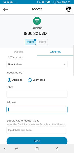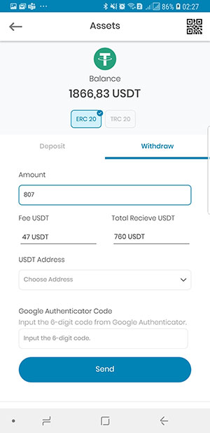- Scan the QR code and fill the "CRYPTO AMOUNT" in your crypto wallet account. Make sure to choose the correct channel (TRC20).