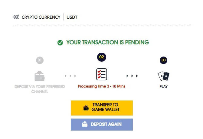 - Click Confirm to be redirected to crypto transaction page or click Back to change your deposit amount (Make sure to enable pop – up window)