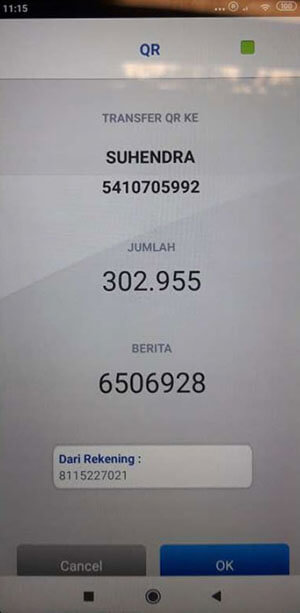 - Scan the QR Code and transfer immediately according to total payment request (unique amount).