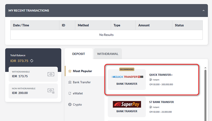 - Choose "Quick Transfer+" icon at Bank Transfer