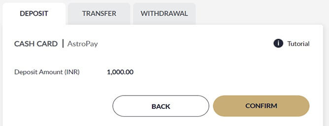 Submit Deposit using Astropay Card, click I have an astropay card