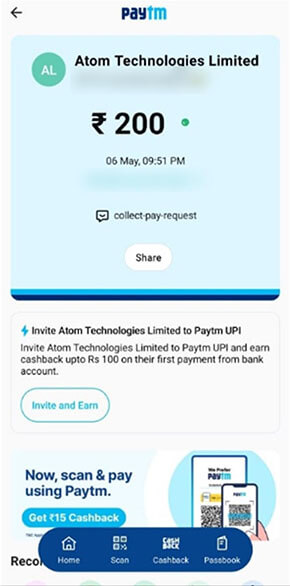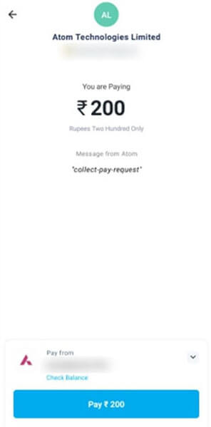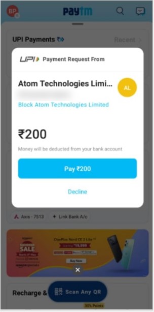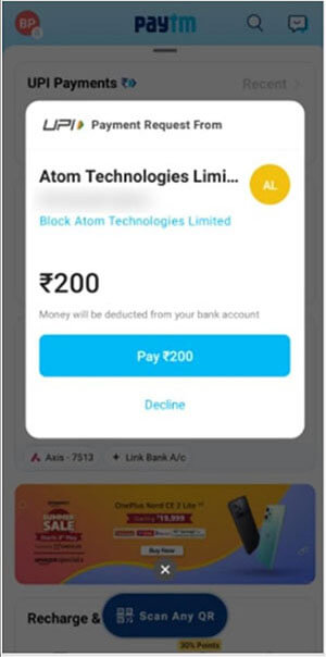 After clicking PAY, Payment Authentication will automatically be sent to the Apps. In this sample we will use, PayTM