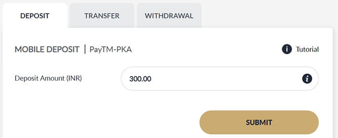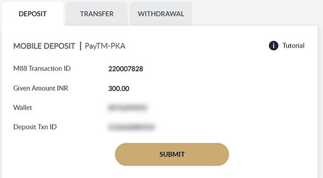 After you have successfully proccessed the transaction through PayTM Apps, input the UPI Ref Number from step 3.5 into the Deposit Txn ID and Click SUBMIT