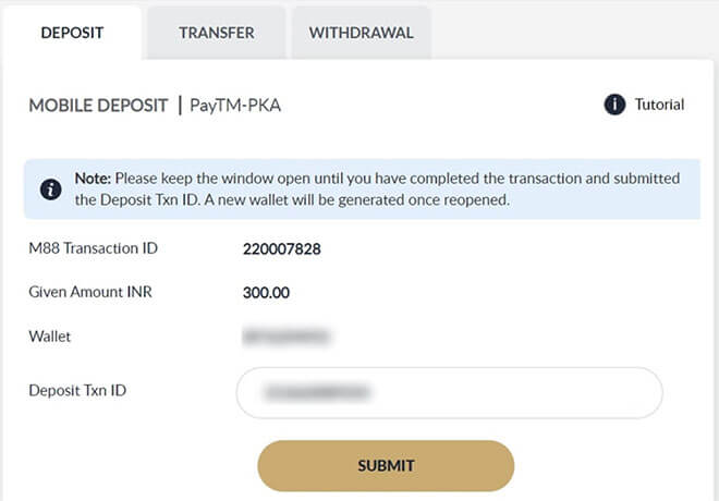 After inputting the amount, proceed the transaction in PayTM Apps to get the Depoit Txn ID