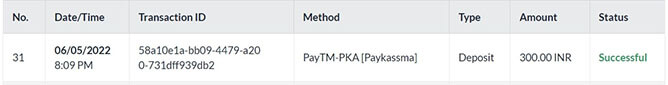 Payment is successfully, status of transaction will be automatically reflected in the Deposit Page.
