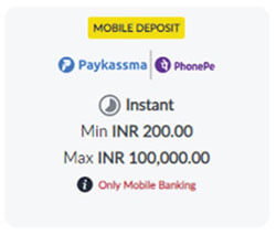 Choose Paykassma PhonePe Logo in Mobile Deposit method