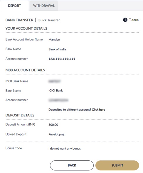 Deposit tutorial to find M88 bank account and guideline to make deposit