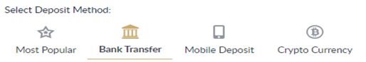 - Select deposit method "Bank Transfer" and choose "Quick Transfer"