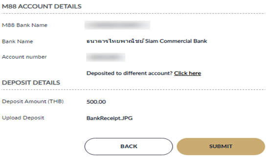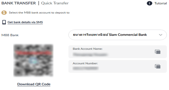 - Select M88 Bank to get M88 Bank Account Details