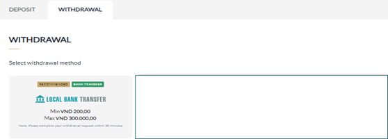 - Choose "Local Bank Transfer" icon at Withdrawal